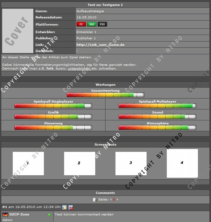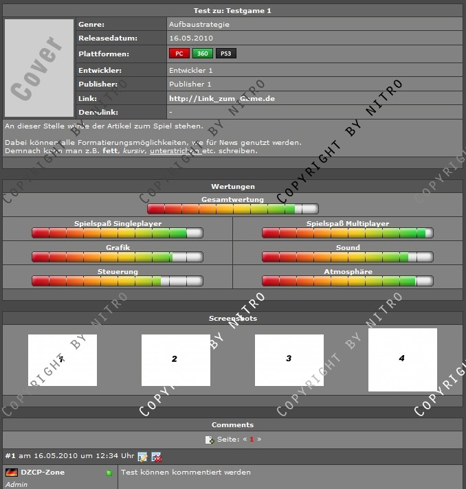 Dieses Addon ermöglicht es euch, Test über Spiele auf eurer Seite zu verfassen und so eure Besucher über eure Eindrücke über ein Spiel zu informieren.